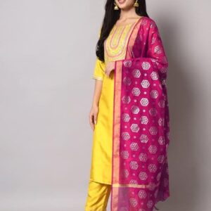 Women Polycotton Yarn Dyed Straight Salwar Kurta Dupatta
