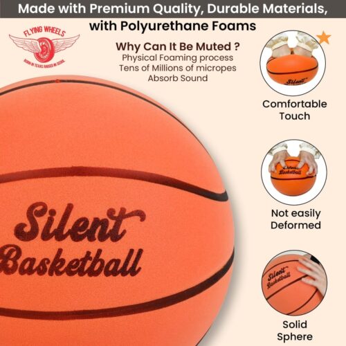- 🏀 Size 7 Silent Basketball – Real Feel with Silent Bounce for Training – This is a size 7 silent basketball, the same as professional basketballs, making it ideal for training and dribbling practice. The quiet basketball has a real bounce feel but without the sound. Perfect for basketball lovers who want to train without making noise in indoor spaces.
