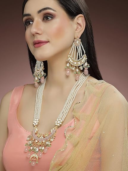 - Karatcart Gold Plated Pink Tumble Kundan Rani Haar Necklace Set for Women. Our products are designed with high-quality material and these products are enhanced with plating that are skin-friendly & with love to reach your heart.