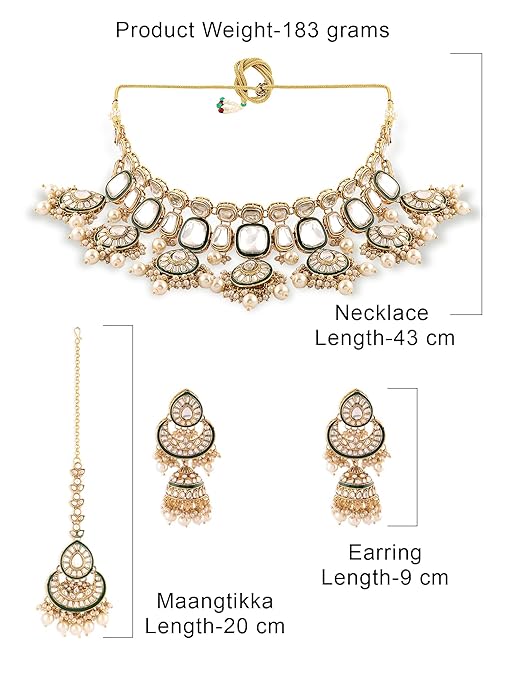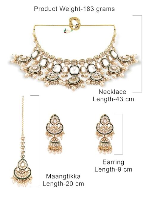 - Dimensions :Necklace Length-43 cm, Earring Length-9 cm, Maangtikka Length-20 cm, Product Weight-183 grams