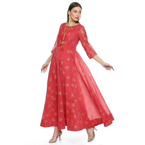 Women Cotton Blend Flared Printed Kurti