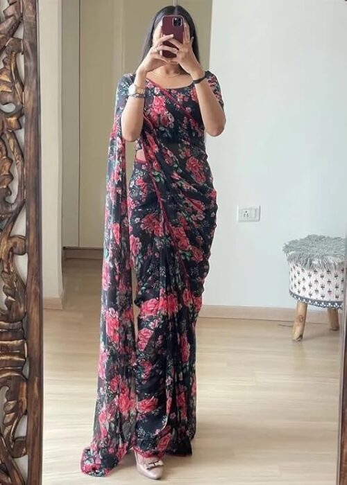 - This is Ready To Wear Stitched Draped 1 Minute Saree (Please Swipe images and check Product Video You Can Wear This saree Within 10 Secound & it’s Ready Pleats Saree)