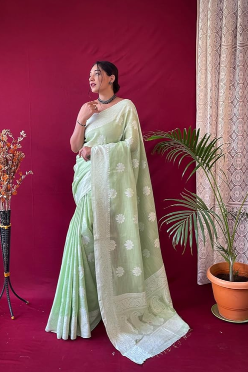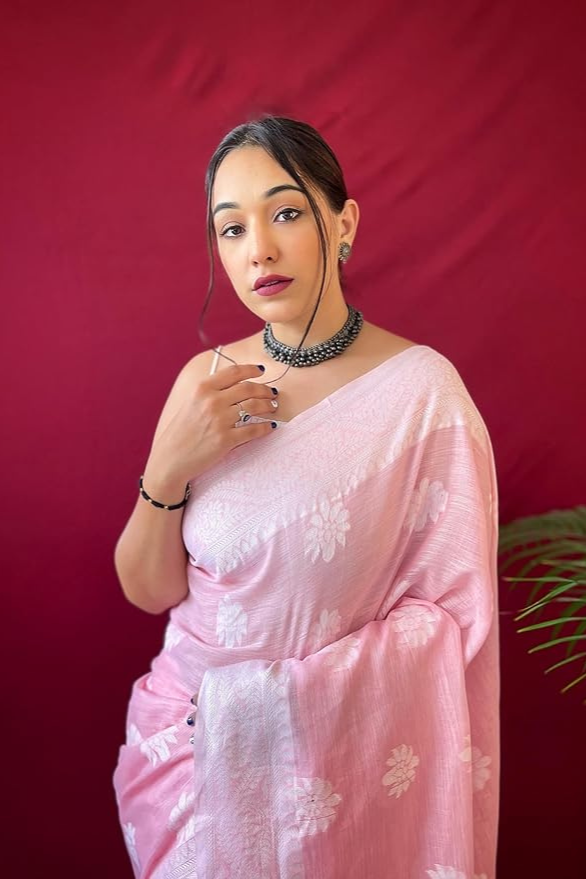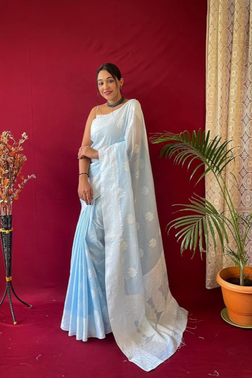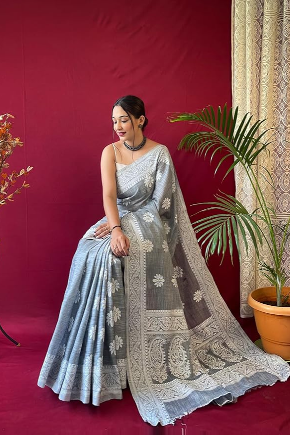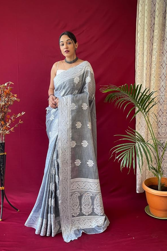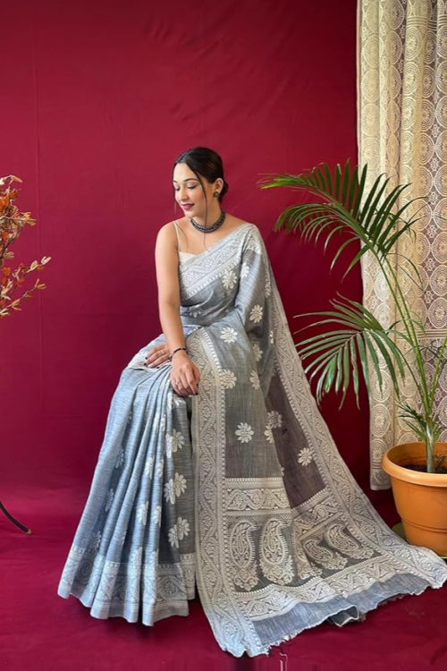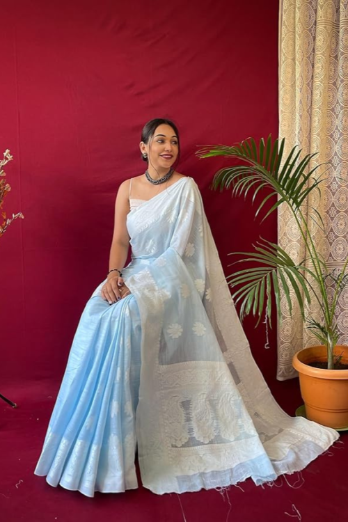 - Work: Jacquard Woven Stylish Sari, Zari Woven.